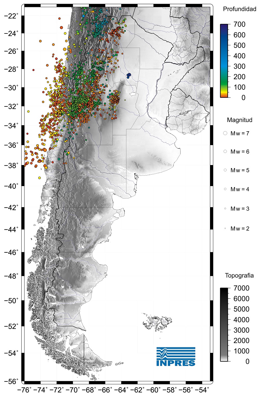 Mapa de sismicidad en la Argentina